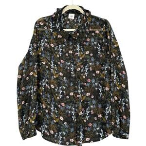 Cabi Floret Sheer Black Long Sleeve Floral Ruffle Collar Button Up Shirt Medium