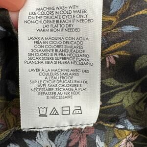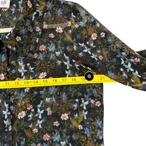 Style Profile: Shirt, Black, Floral, Button up, Ruffle, Womens, Medium, Polyester, Trendy, Long sleeve