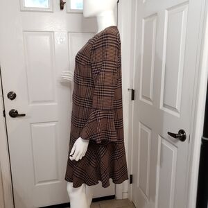 Cabi Flounce Jacket Tartan Style Plaid Long Length Brown and Black
