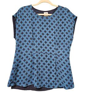 Cabi Foulard Blouse Womens Size Small Teal Blue Back Slit Cap Sleeve Top #3274