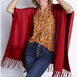 You will be OBSESSED with this cabi fringe poncho! The red is so festive for this season and the fringe elevates the look for a night on the town