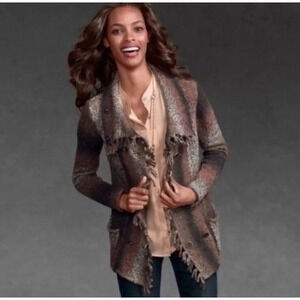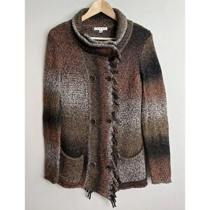 Cabi Frontier Cardigan Sweater Double Breasted Size Small Silk Blend Cowl Womens