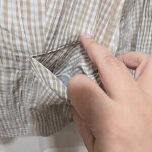 Color: Beige / Tan Gingham Plaid with Floral Contrast Cuffs
