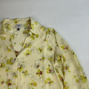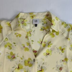 Cabi Go To Blouse Small Yellow Floral Print Button Front 3/4 Sleeve Blouse 6294