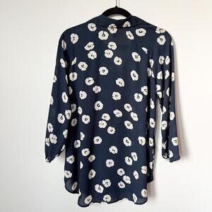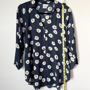 Cabi Go To Button Up Floral Blouse Navy Blue Womens XS #5705 Office Spring