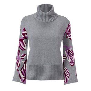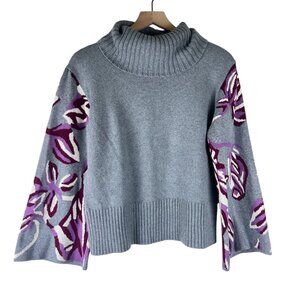 Cabi Gray Floral Flare Sleeve Eden Pullover Turtleneck Sweater
