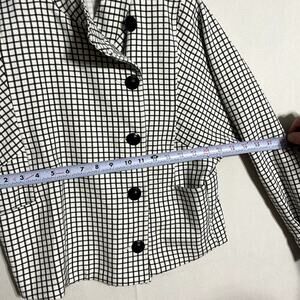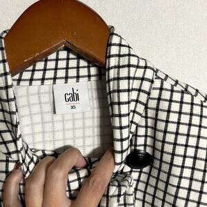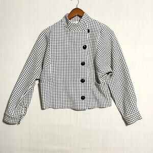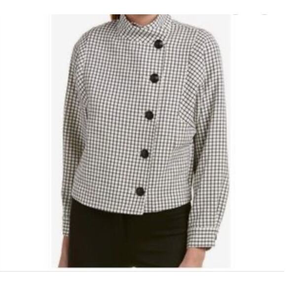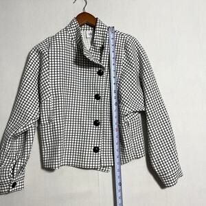 Cabi Grid Print Asymmetrical Button Up Jacket Blazer High Neck - Size XS