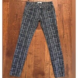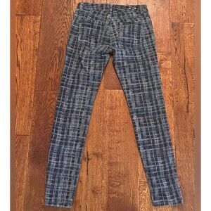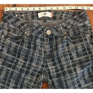 Cabi Grid Skinny Jeans #3047 Stretch Blue Tie Dye Plaid Denim Pant Womens 2 Boho
