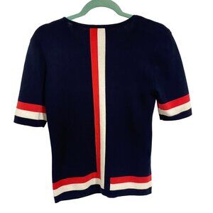 Cabi Hampton Shell Knit Nautical Short Sleeve Sweater Blue, Red, White Size M