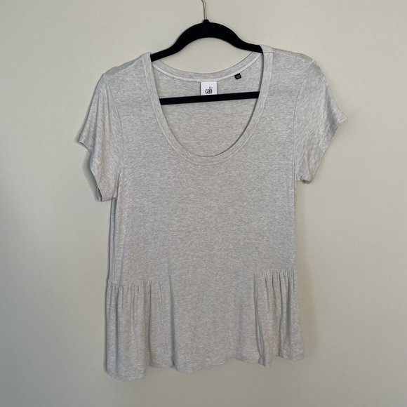Cabi Hangout Tee Beige Short Sleeve Peplum Tee Shirt Women's Small Scoop Neck