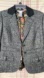 Cabi Herringbone Wool Blend Blazer Equestrian English Pleated Tweed Gray/Black 2