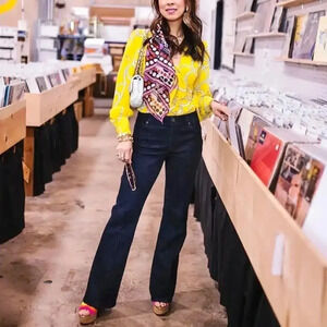 5-pocket style jeans. Indigo denim with clean, dark wash.