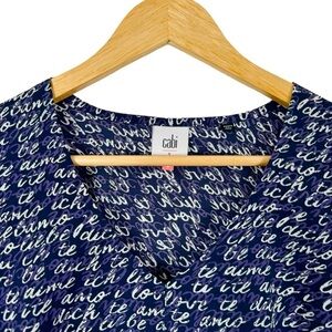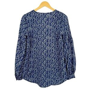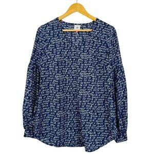 Cabi "I Love You" Long Puff Balloon Sleeve V-Neck Blouse Navy Size Small
