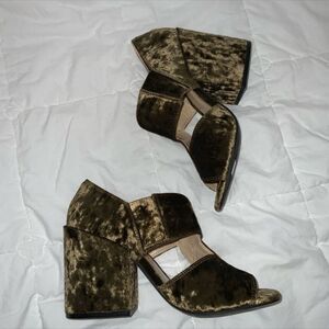 CAbi Interlock Green Velvet Sandal Interlock Block Heels # 6016