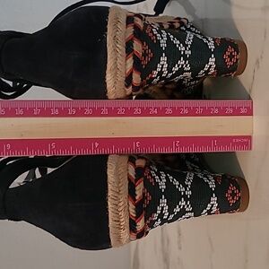 Cabi Isla Leather Suede Navy Blue Wedge Heels Espadrilles Sandals Wmns 7.5 Boho