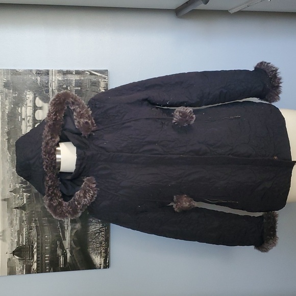 This Cabi jacket has it all: pockets, buttons, fully working zipper, red liner, gorgeous quilt design, removable hoodie and fur. So about all the white fuzzies, well, I was young and thought I could get away with washing it in the delicate cycle, but in this case, it really did need to be dry cleaned. The fuzz can easily be taken off, but you will need a lot of patience, which is sold on a separate listing. This comes from a smoke free home, pet friendly ๐. The zipper works, but you do have to make sure both zippers at the bottom are stacked properly if not it won't zip up. ๐ This is a beautiful jacket and if it still fit me, I'd be flaunting it all over Florida.