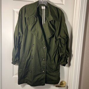 Cabi olive colored jacket w/button front and ruched sleeves, small size