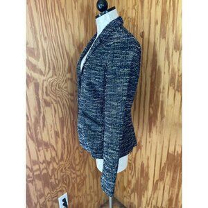 Cabi Jacket Midnight Mingle Textured Blazer Full Zip Long Sleeve Blue Sz 10