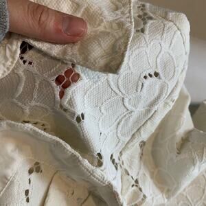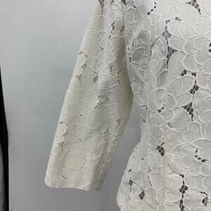 Cabi Jacket Women Small Off White Portrait Lace Floral 3/4 Sleeve Cropped Button