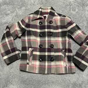 Cabi Jacket Womens 8 208 Double Breasted Plaid Coat Black White Pink Career