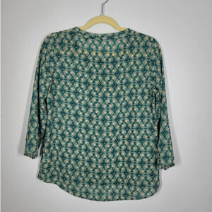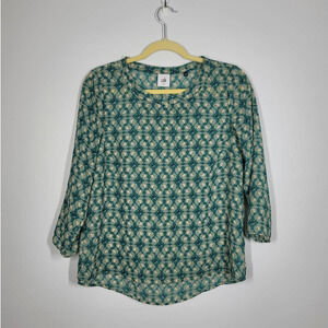 Cabi Jade Top Size Small Boat Neck 3/4 Sleeve Hi-low Top Wheat Patterned Green