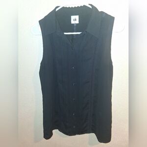 Cabi | ‘Jagger’ Black Tuxedo Pin-Tuck Pleated Button Up Sleeveless Top S
