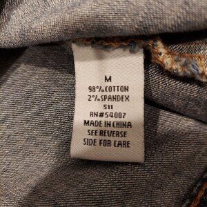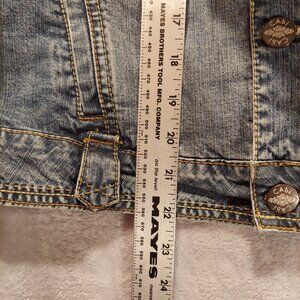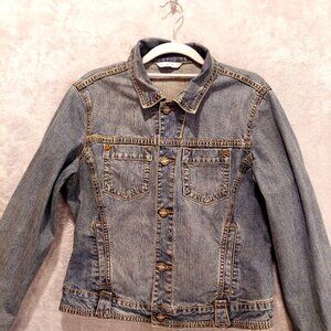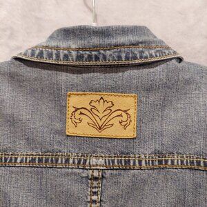 Cabi Jean jacket womens M Blue Denim Logo cropped Long sleeves waist tabs beachy