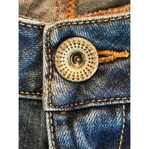 Cabi skinny women's blue denim stretch preowned jeans size 12. Zipper front with metal button closure. General wash wear fade. Good condition. Waist measurement 17 3/4 inches across the front of jeans laying flat. Inseam 29 14 inches and length from waist to hem is 38 inches. Lots of great wear left in these jeans.