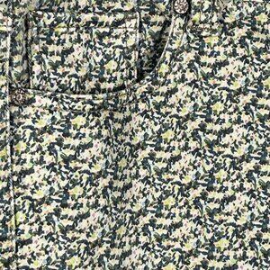 Playful yet polished, these Cabi skinny jeans feature an olive-green ditsy floral print on soft stretch denim. Classic five-pocket styling with zip fly and button closure. Great for dressing up with a blazer or keeping casual with sneakers. Excellent preowned condition with plenty of stretch left.