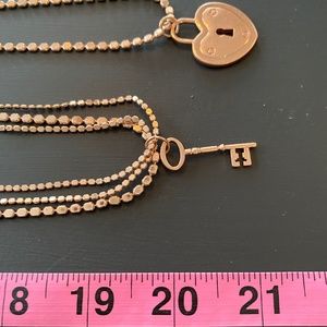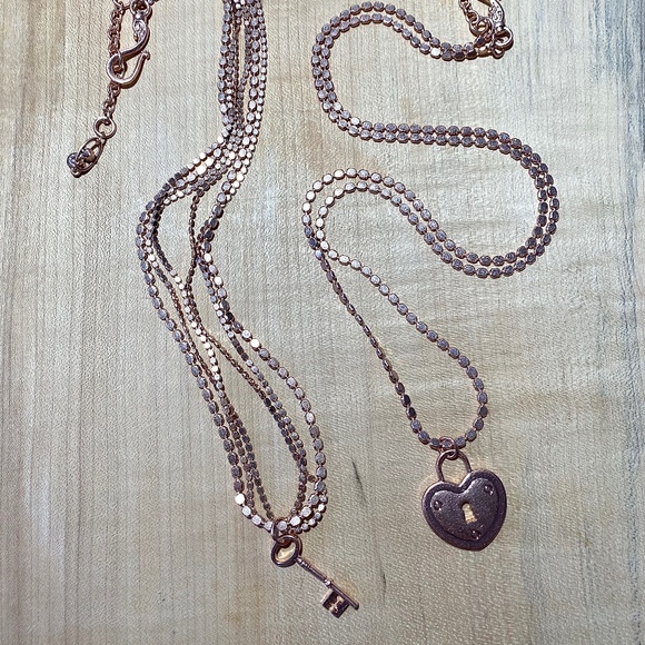 Cabi Jewelry - Lock & Key Necklace(s) - Vintage rose gold, sweet heart lock and key on two separate necklaces. Playful yet elegant. Lock and key earrings sold separately (to be listed).