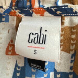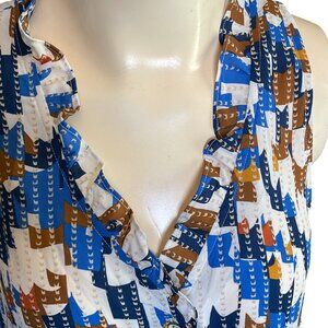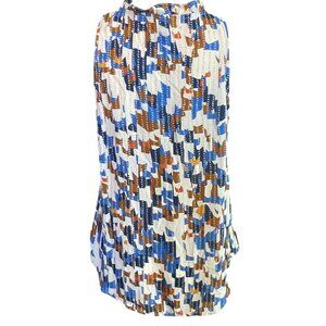 Cabi Jigsaw Geometric Print Sleeveless Ruffle Top