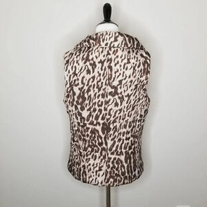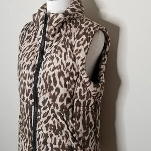 Cabi Juliet brown leopard animal print sleeveless puffer vest. Two front pockets. 1 inner chest pocket. Zip front closure. Excellent preowned nearly new condition.