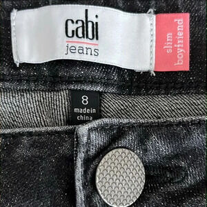 Cabi Kate Slim Boyfriend Distressed Jeans in Shadow Wash - NWOT - Size 8. Boyfriend fit, slim leg, factory distressing and fading, zip fly with button closure, 5 pockets, faded black wash, stretchy. Approximate measurements: 17" waist, 9" rise, 30" inseam.