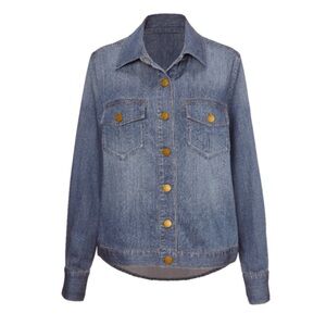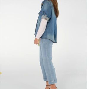 This denim jacket features a high-low hem, rose gold buttons and the softest fabric imaginable! Lightweight (more of a shacket weight, not a structured denim) and easy to wear as a blouse or layered. Everyone needs a denim jacket and this one is a keeper!