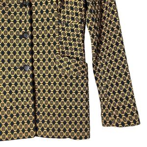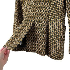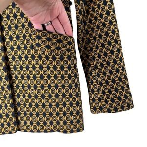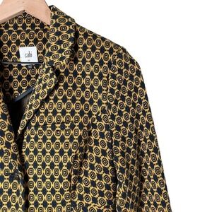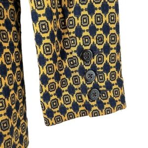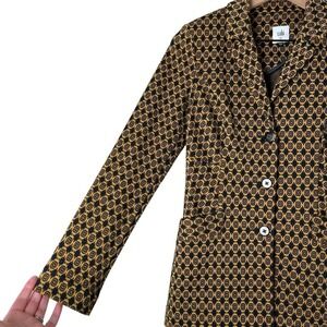 Cabi Kensington Proper Standout Blazer Jacket in Yellow Navy Medallion Motif, Size XS
