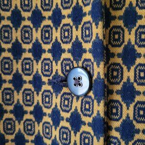 Cabi Kensington Proper Standout Medallion Blazer, Women’s M, Fitted, Gold/Navy, Button Front, 2 Front Pockets, EUC