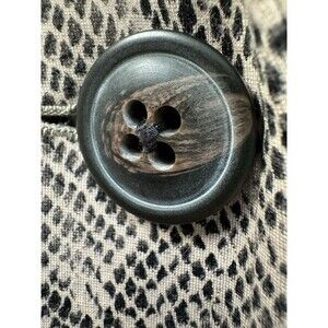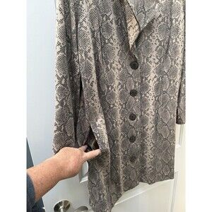This is a fabulous Carol Anderson long duster blazer in a snake print that looks divine over black or brown pants. Excellent condition. Five button front, side pockets and a half belt and back for style and shape. Back also has a nice pleat detail Sleeves have a three button style. Thin shoulder pads help keep a flattering upper body shape and fit. This is offered in a hard to find womens 2XL.