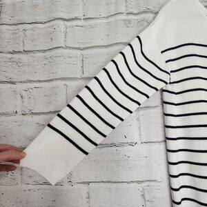 Cabi Knitted Button Up Striped Turnabout Cardigan Sweater White Size Medium 6164