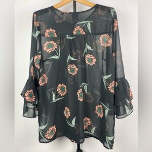 Cabi La Di Da Black Sheer Chiffon Flutter Sleeve Button Up Blouse 5206