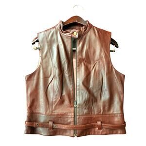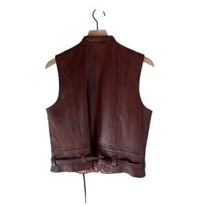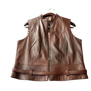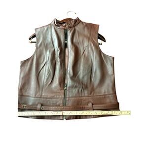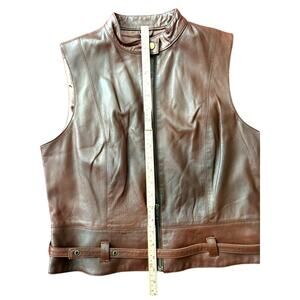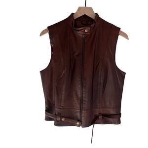 Cabi Leather Vest M | Equestrian Heritage Core Runway 2025 Belted Brown Moto