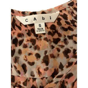 This Cabi Leopard Animal Print Tunic is a small, sleeveless, pink and brown blouse. It's a flowy tank style, perfect for a chic and daring look.