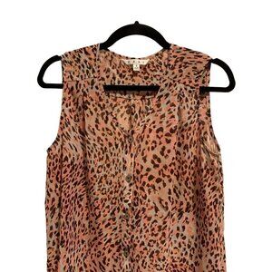 Cabi Leopard Animal Print Tunic Small Sleeveless Pink Brown Blouse Flowy Tank