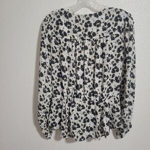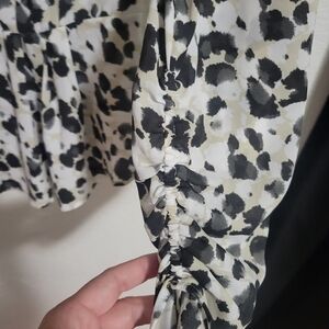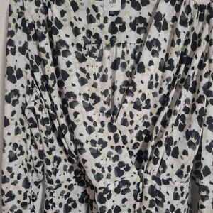 Cabi Leopard print wrap style roushing on sleeve top size small