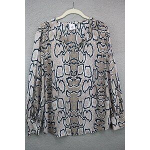 Cabi Long Balloon Sleeve Snake Print Silky Top-Size XL