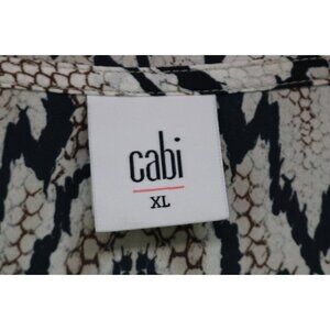 Cabi Long Balloon Sleeve Snake Print Silky Top-Size XL. Item is in Great Condition. The material is 100% Polyester. Laying flat measuring armpit to armpit it is 24'' and 29'' in length.