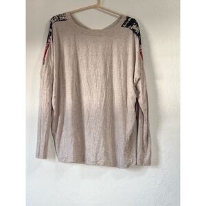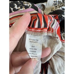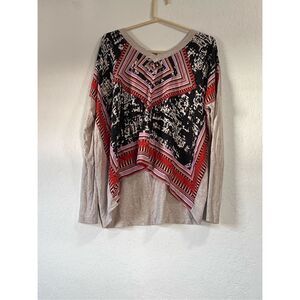 Cabi Long Sleeve Printed Silk Contra Top M Beige Black Red V-Neck Loose 768