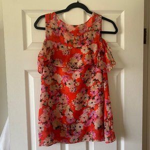 Lush Coral Red Floral Cold Shoulder Blouse