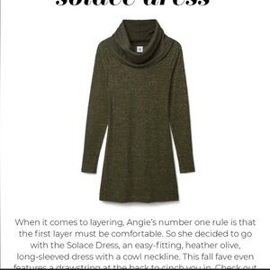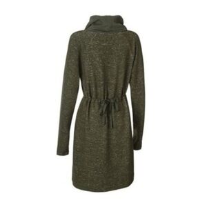 Excellent used condition! Green olive heather cowl neck sweater dress. Long raglan sleeves. Drawstring on the back to cinch in the waist and give shape. Soooo soft!