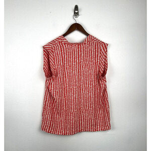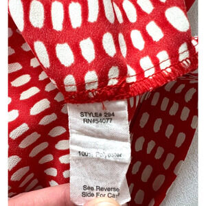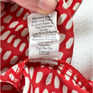 Cabi Madeline Blouse Top Womens Size L Red Orange White Dot Drape Ruffle Silky