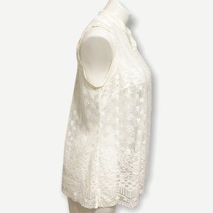 Cabi Medium Prudence White Lace Sleeveless Tank Blouse